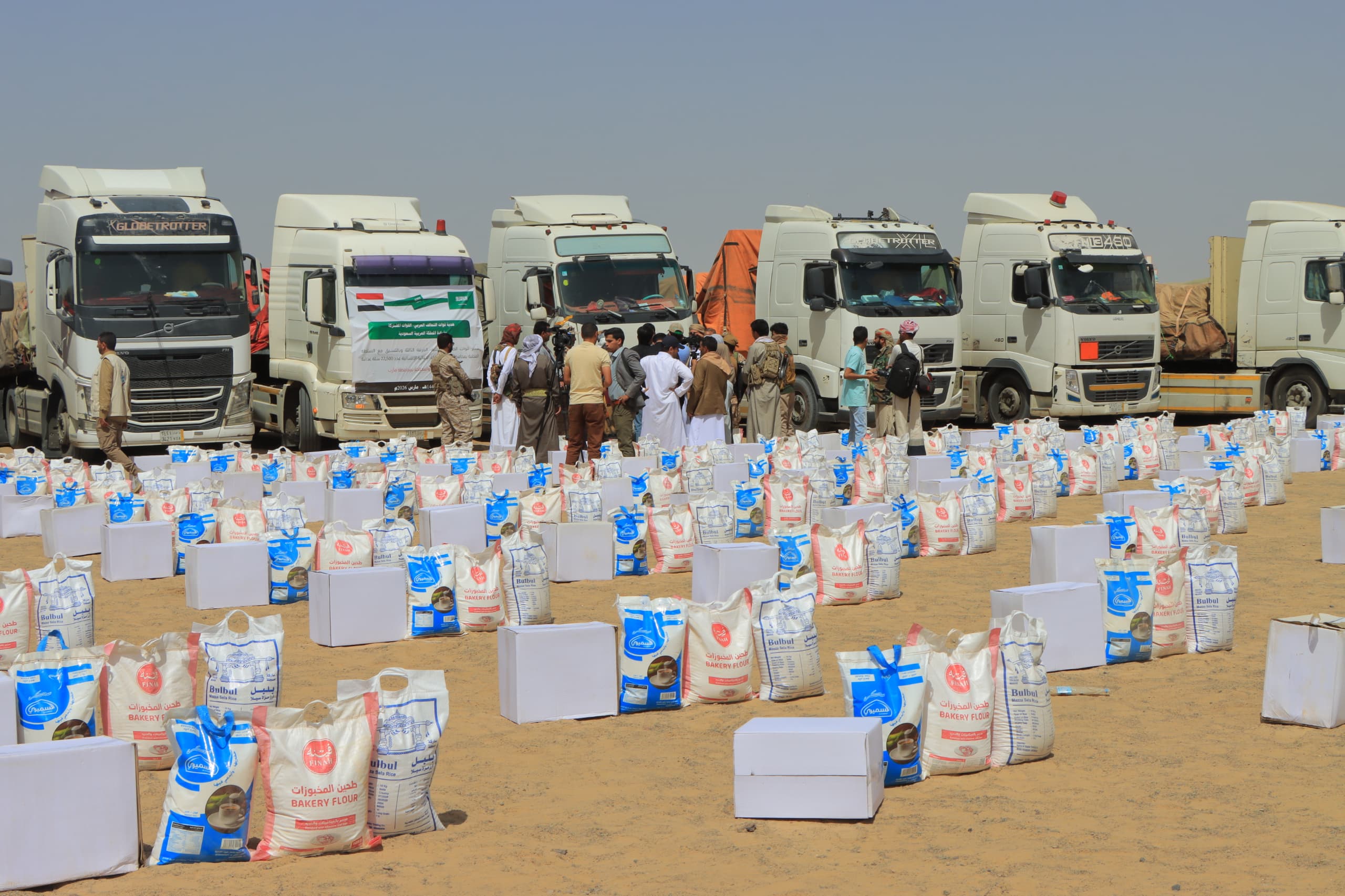 - السلطة المحلية بمأرب تتسلم قافلة اغاثة غذائية مقدمة من قوات التحالف العربي بقيادة المملكة
