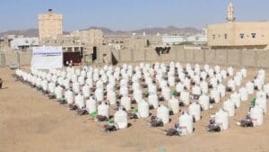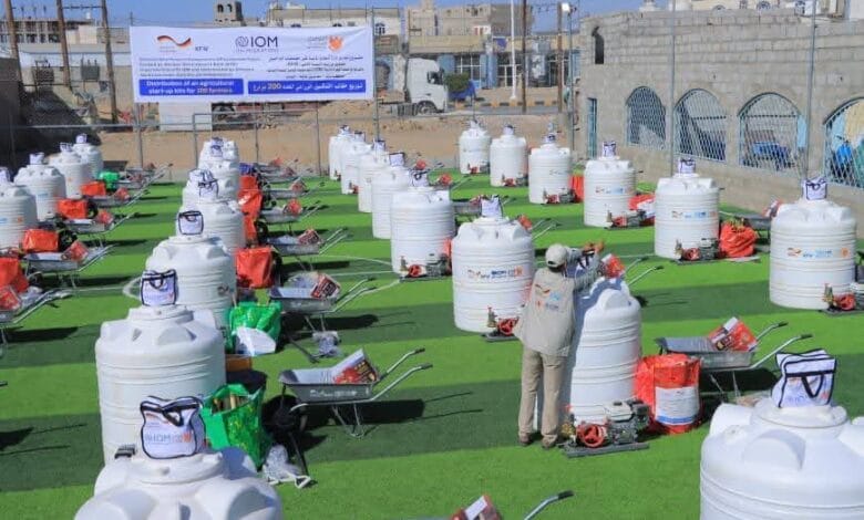 دشن وكيل محافظة مأرب، اليوم، توزيع حقيبة التمكين الزراعي لعدد 200 مزارعاً و مزارعة بعد تدريبهم ضمن مشروع تحسين ادارة الموارد المائية في مخيمات النازحين، والذي تنفذه مؤسسة التواصل للتنمية الانسانية بالشراكة مع المنظمة الدولية للهجرة بتمويل من بنك التنمية الالماني.